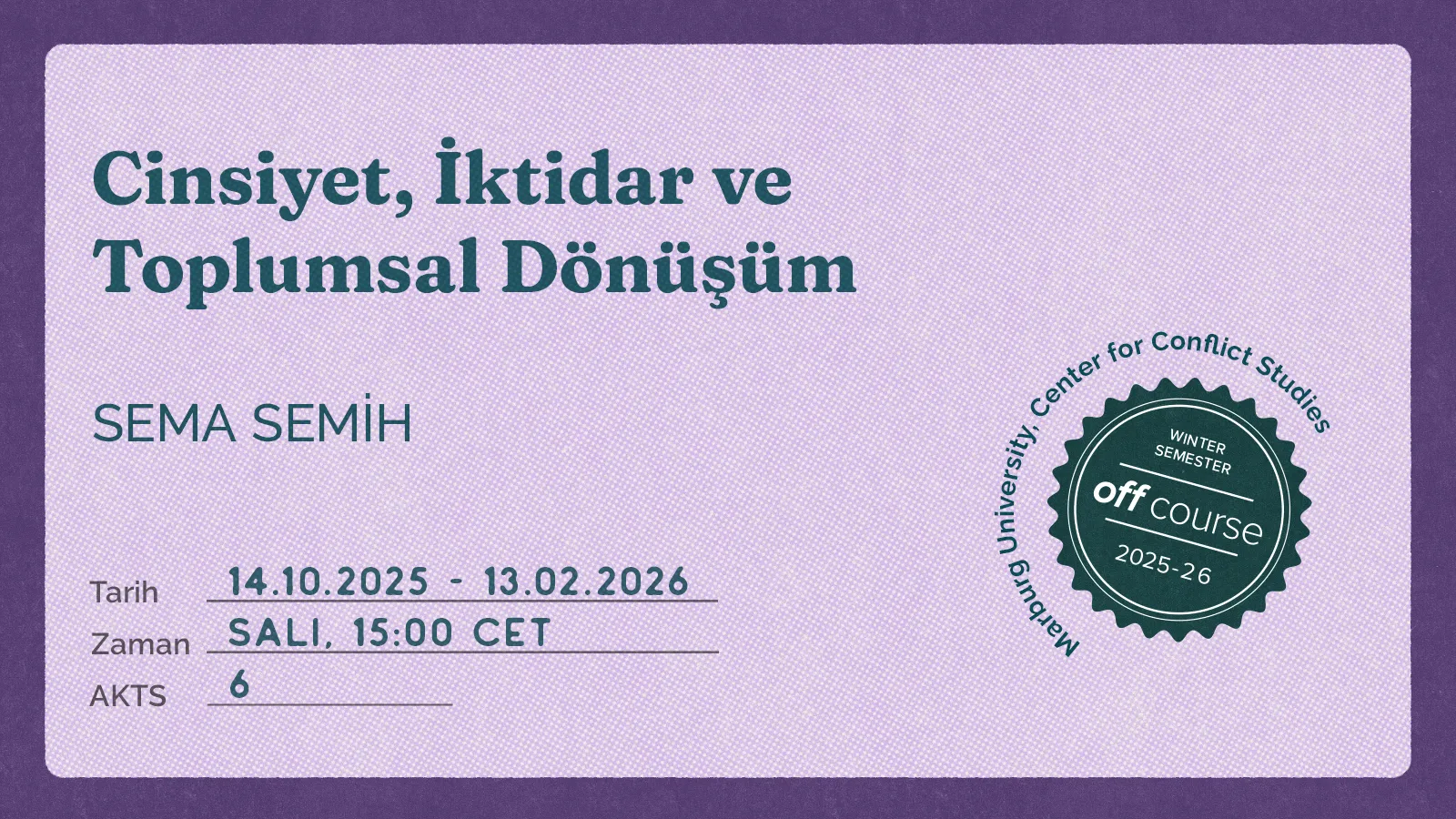 This course brings together gender-focused academic research, civil society initiatives, activist interventions, and artistic practices selected from Turkey and beyond. It aims to critically analyze the rise of anti-gender ideologies on a global scale, opening up space to explore the possibilities of resistance, resilience, and transformative politics in different cultural and political contexts.